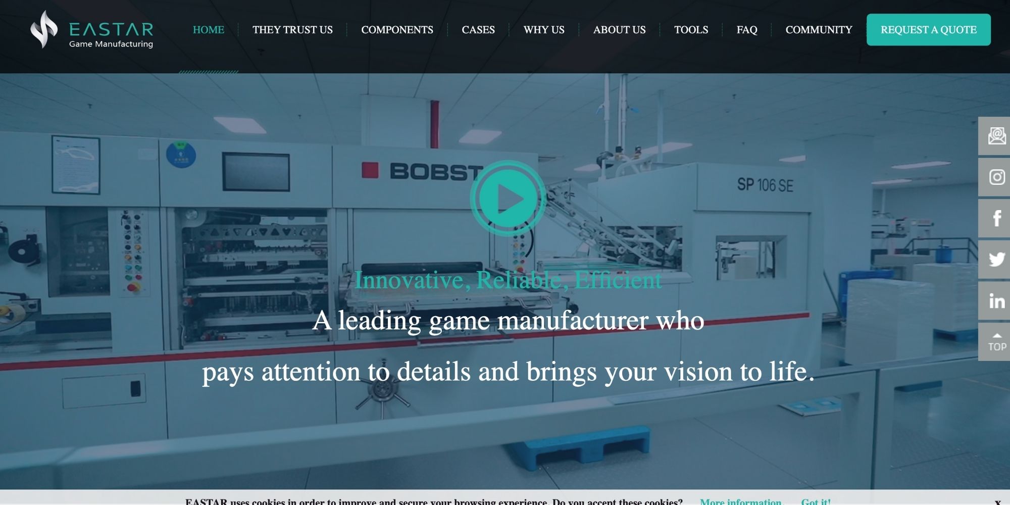 In just a few years, Eastar has become a go-to manufacturer for many premium Kickstarter games. Theyre very familiar with the demands of crowdfunded projects that often have deluxe editions and stretch goal add-ons. Eastar is known for working closely with clients to meet unique requirements whether its sourcing special plastic for miniatures or ensuring that a giant scenario book has the right binding.