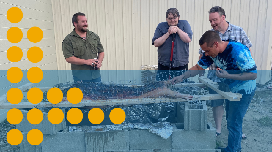 Thankfully, the whole staff was able to gather this year. Last year, as with most events, the 6th annual Pig Roast was cancelled due to COVID-19 restrictions on social distancing.